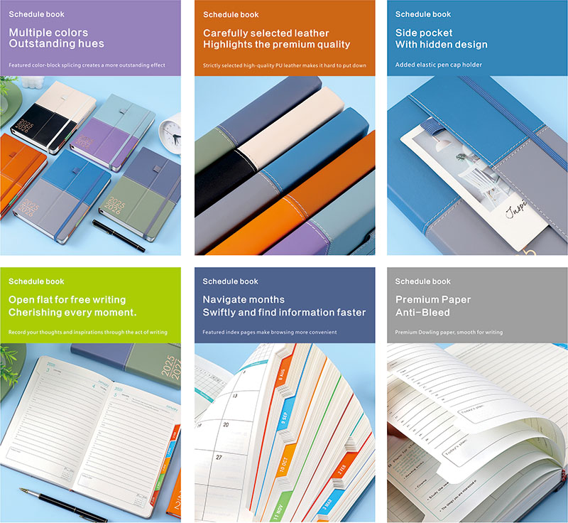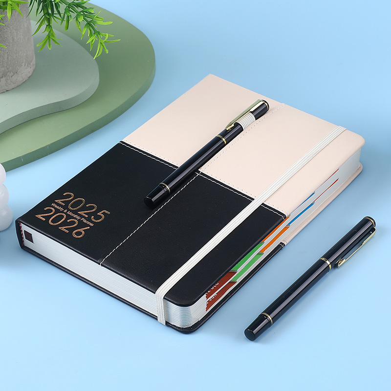Este caderno diário do Plano, através do conceito de design de tempo de duas cores e planejamento de lazer, cria uma cobertura com costura e costura de duas cores, equipadas com tiras elásticas para proteger as páginas internas planas, e as páginas internas marcam claramente os 2025-2026 Período, que, desde os planos mensais anuais.