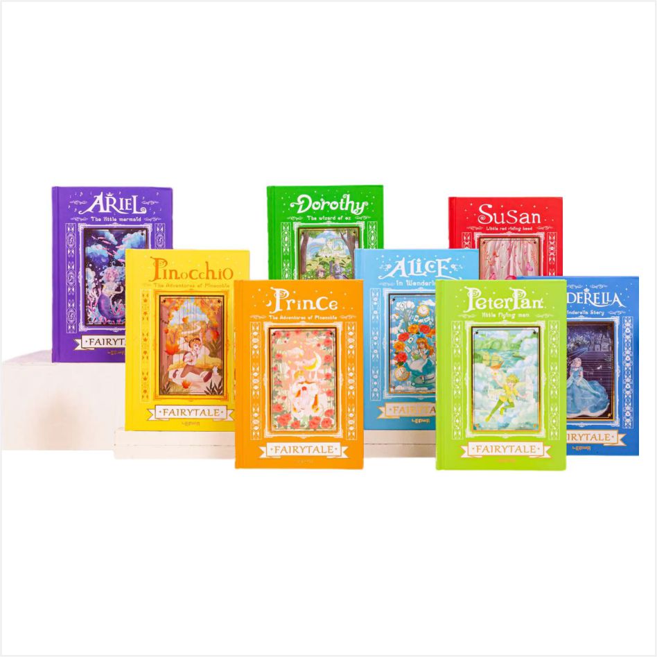 A capa de cada caderno é pintada com personagens clássicos de conto de fadas. A Pequena Sereia (Ariel), Dorothy, Little Red Riding Hood (Susan), etc. Todos aparecem, transformando os personagens maravilhosos do conto de fadas em "amigos" que o acompanham para escrever. Abra o caderno, assim como entrar em uma cidade de fadas. A redação do livro também se torna romântica e interessante.