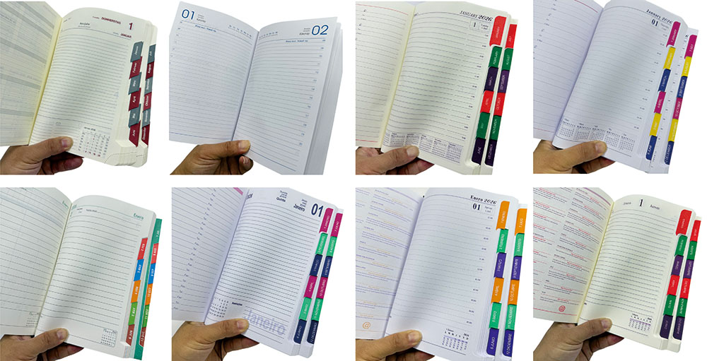 Página do índice de destino: Mês da coluna do rótulo do índice lateral, defina 2 paging colorido, localize rapidamente a data.