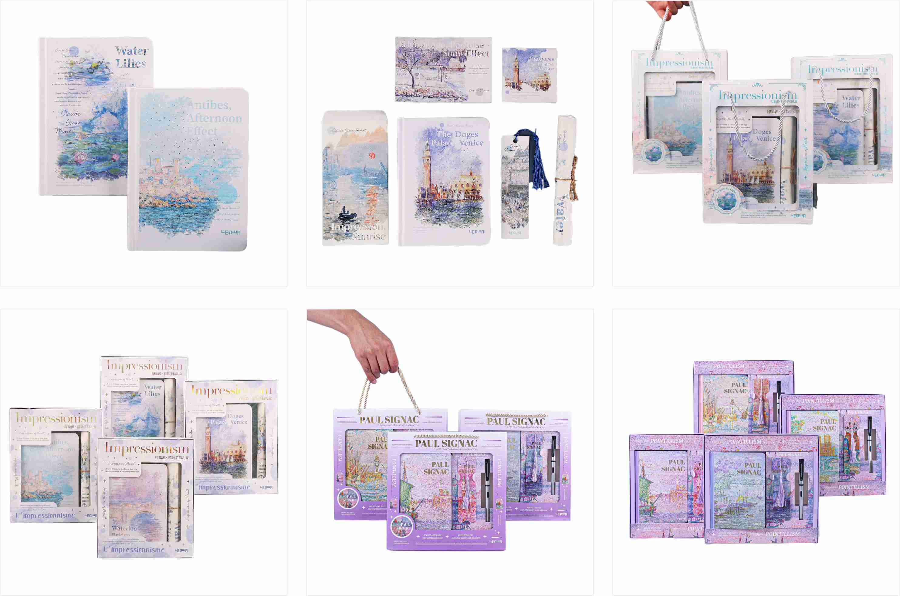 O design do caderno único é simples e requintado, e o conjunto de caixas de presente adiciona uma sensação de cerimônia. Existem caixas de presente roxas e caixas de presente com temas impressionistas para escolher, com as mesmas canetas, marcadores, envelopes etc., com todas as necessidades de escrita e decoração. Ao dar presentes, desembalar é como abrir uma "caixa cega" artística para tornar seu coração único. Seja decorando a mesa ou parentes e amigos surpreendentes, pode integrar perfeitamente a arte diária.